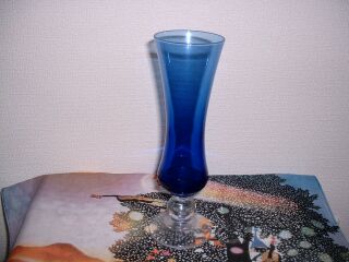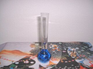 フラワーベース第1号です。 和光電器の景品でもらったものです。底もしっかりしていて、口が広がった感じなので、丈の長い花をたくさん飾れますが、今は造花の青いバラを飾っています。 |