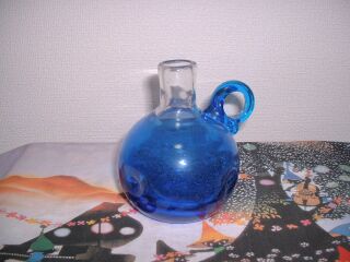 2000年の1月に倉敷に旅行に行ったときに創作ガラスを扱った店で買ったものです。ぽってりとしていて水色から青色のグラデーションになっています。