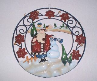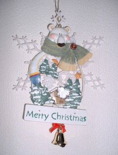 阪急梅田のクリスマスワールドで買ったものです。ブリキでできたクリスマスリースです。かなり重たいので昨年は買うのをためらったのですが、今年はだんだんだんとなっている雪だるまがかわいらしかったので、買うことにしました。 2800円でした。 |