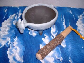 大阪の雑貨屋san「生活雑貨21 by JARCO」で買いました。ひとつもすり鉢は持っていなかったのですが、あまりのかわいさに買ってしまいました。なんともいえない淡いブルーががったグレーの色でやぎの表情がかわいらしいです。ごまをする使い勝手もいいです。 |