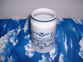 雑貨屋巡りをする度に隅の方に並べられているのが気になっていたキュジーヌシリーズ、白地に青のロゴとくるんと先が曲がった線、キュートな小鳥やお花が散りばめられたデザインに惹かれ、結婚したら少しずつ集めようと思っていました。時々見ているネットショップの“カントリー工房Wood-session”がセール期間中に本当に使いそうなものから選んで買うことにしました。