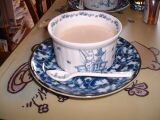 【紅茶プリン】 ★材料★ 紅茶の葉(アッサム・ダージリンなど) 大1強 熱湯 大2 牛乳 1カップ 生クリーム 1/2カップ 砂糖 大3 粉ゼラチン 5g 水 大2 メープルシロップ ★作り方★ @ 水にゼラチンを入れてふやかす。 A 小鍋に紅茶の葉と熱湯を入れ、3〜4分置いて葉を開かせる。牛乳、生クリーム、砂糖を加えて混ぜながら、沸騰直前まで温め、火を止める。 B Aにゼラチンを加えて溶かし、ざるでこしてボウルに移す。ボウルの底を氷水にあて、ゴムベらで混ぜながら冷やし、とろみがついたら型に流し入れて、冷蔵庫で冷やし固める。 C メープルシロップをかける。 |