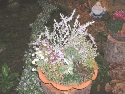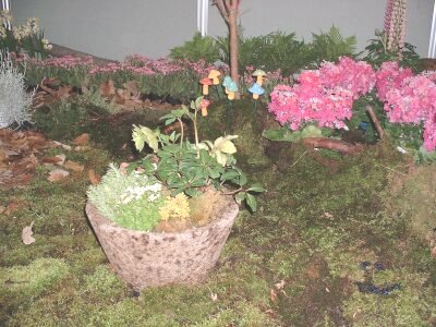 2002年3月16日に、 家から歩いていくことができる場所で『早春花のフェスティバル』があるというので行ってみることにしました。よびこ堂sanが作られた「楽しい夢の世界 メルヘン・ガーデン」。もうすぐ春が近づいてくるこの季節、とてもメルヘンな世界に出会って春のベランダガーデニングのアイデアになったらいいなぁと思いました。色の組み合わせ、寄せ植えの時のお花の組み合わせ、こけやガーデンチップの使い方、立体的なガーデニングづくりにこれからの参考にしたいと思います。