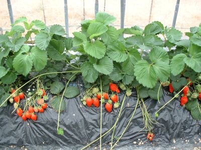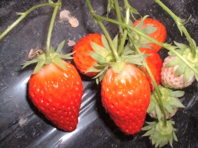 仲良く実ったいちごたち。茎はプチンプチンとちぎりやすい。 |