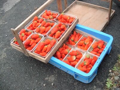 帰りの車の中はイチゴのむせ返るようなにおいでいっぱいでした。
