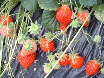 さあ、いよいよ、いちご狩り。私は3年ぶりだが、ダンナsanは初めて。ハウスいっぱいに広がるいちごを目の前にして興奮気味。 |
