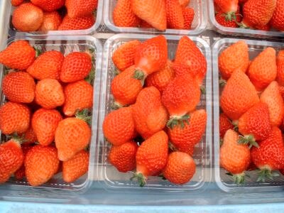 昔からの品種の“とよのか”。スーパーでもよく見かける品種。ただ甘いだけでなく、しっかりとしたしんのある甘さですっぱさもある。 |