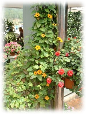 山吹色で中心が茶色の印象的なお花。つる性植物。つる性植物は大好きなのでやっぱり惹かれてしまう。 |