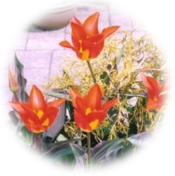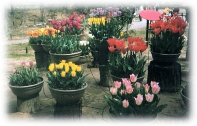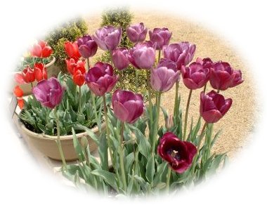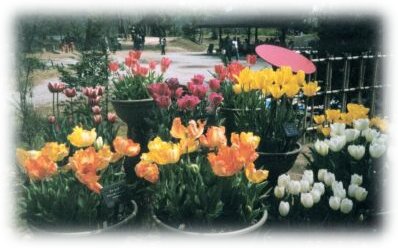 たくさんのチューリップが一色ずつ、丸くて大きなプランターに植えてある。たくさんのチューリップを見て分かったことは、 |