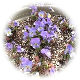 紫と薄紫と黄色の組み合わせ。 |
