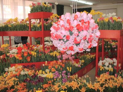すべての箇所を見終わった頃、花の展示ホールに色とりどりのチューリップが植えられていて、足も疲れていたが、急に目が輝いた。 |