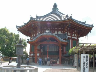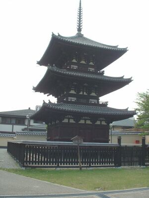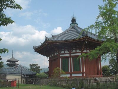 いろいろ歩きながら写真を撮っていると南円堂と五重塔が一緒に入る写真ポイントがあるとおじさんに教えてくれた。 |