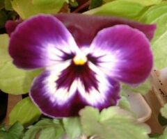 | 昨年もこの色パンジーを買いました。咲く花によって覆輪やブロッチの出方が違うのでおもしろいです。真ん中のものはもともと違う種類のパンジーかもしれません。この白と紫の組み合わせが好きです。 | |