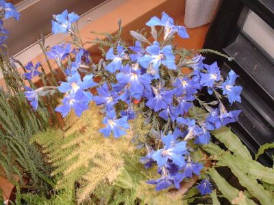 | 3度目の青い初恋草です。何度も枯らしてしまった水切れに弱い品種なのですが、この色と花の形を見てしまうと買わずにいられません。 |